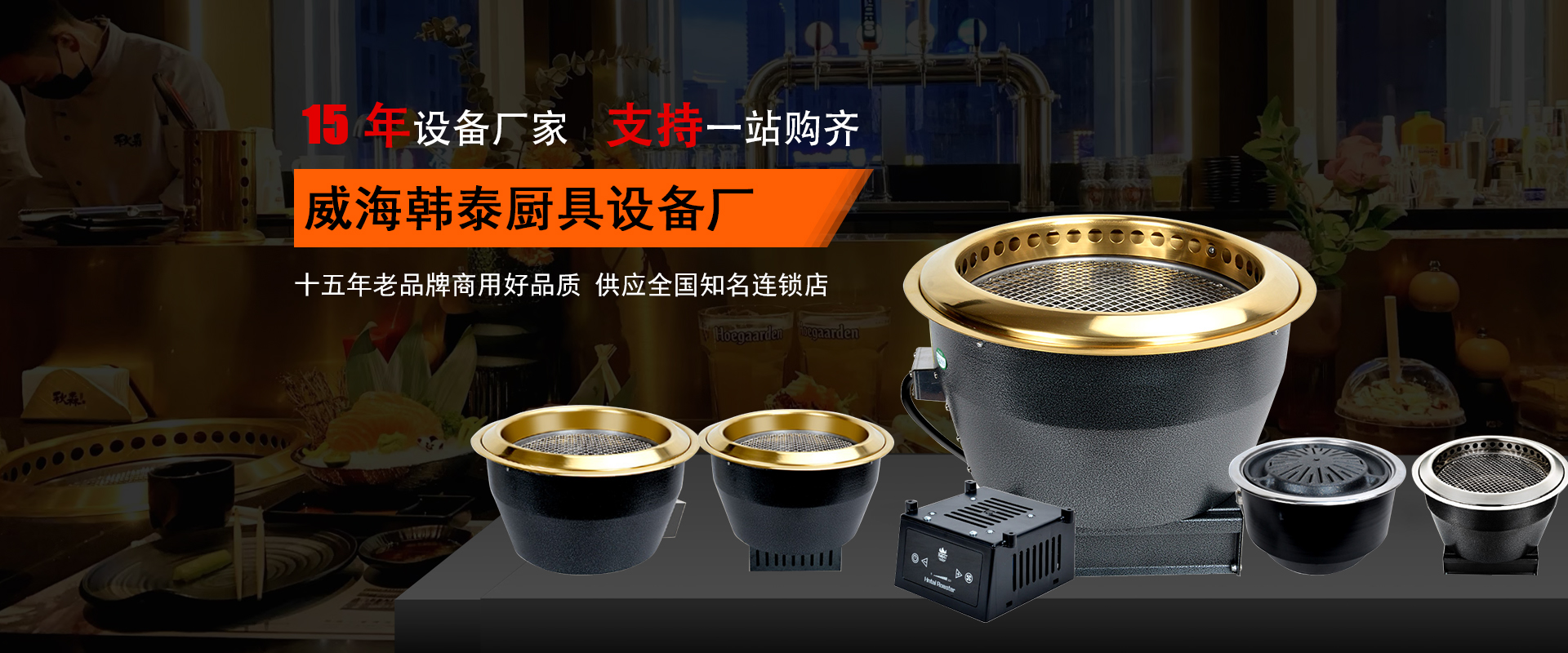 韓泰(HNTAI)廚具品牌是擁有15年歷史的生產(chǎn)廠家,成立于2009年,公司位于美麗的海濱城市威海市高區(qū),是圍繞燒烤爐系列產(chǎn)品集研發(fā)、制造、銷售、售后于一體的綜合性生產(chǎn)企業(yè),主營(yíng)產(chǎn)品無(wú)煙燒烤爐,日式電烤爐,烤涮一體爐,韓式商用爐等,我們給國(guó)內(nèi)很多品牌連鎖店提供廚具設(shè)備,吉布魯,韓宮宴、酒拾烤肉、歡樂(lè)牧場(chǎng),八幡無(wú)二、九田,本家,雅麗家,韓風(fēng)源自助連鎖,小尾羊,炙景臺(tái)燒肉,楊記齊齊哈爾烤肉等等。產(chǎn)品遠(yuǎn)銷韓國(guó)、新西蘭、西班牙、維也納、美國(guó)等其他國(guó)家和地區(qū),期待您選擇韓泰,我們將竭誠(chéng)為您服務(wù)!